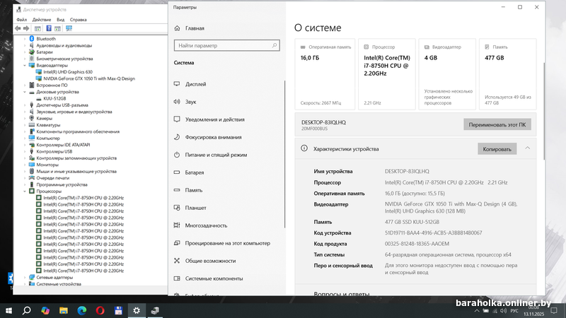 + мощный процессор - Intel Core i7 8750H 8го поколения, видеокарта NVIDIA GeForce GTX 1050 Ti 4 ГБ;