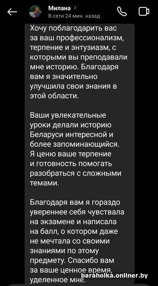 Профиль работы: подготовка к ЦТ/ЦЭ, подготовка к обязательному школьному экзамену по истории Беларуси в 9 классе, а также помощь в изучении школьной программы.