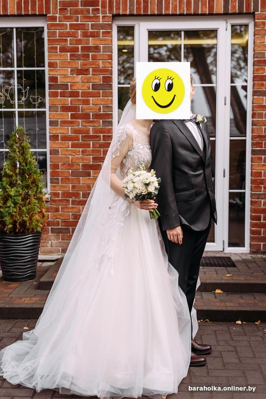 Продаётся свадебное платье. Размер 44 (S). Б/у, надето 1 раз. Цвет — шампань. Есть корсет, 32 жемчужные пуговицы на спине вышито белым и серебристым бисером, куплено в салоне Доминик осенью 2023 года (Брест).