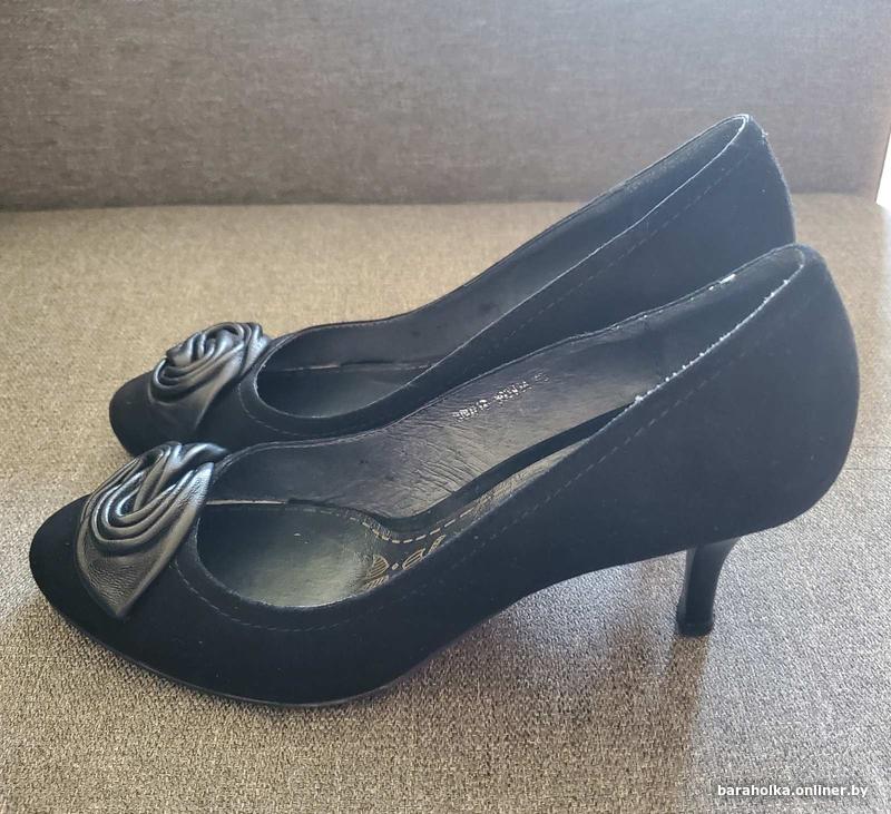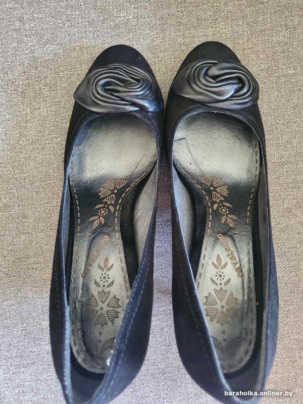Красивые замшевые туфли на выход с кожаными розочками. Надевались один раз. Фирма Cavaletto. Каблук средний. Размер 40,5.