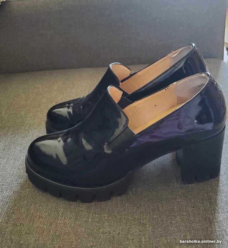 Лаковые туфли из натуральной кожи, б/у, но в отличном состоянии. Идеальны в дождь- подошва толстая. Размер 40. Каблук средний.