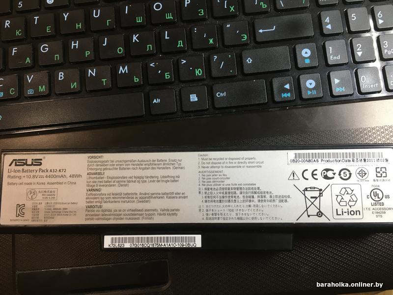 Ноутбук ASUS K72F-TY305D на запчасти. Без HDD/SSD, убитая матрица.