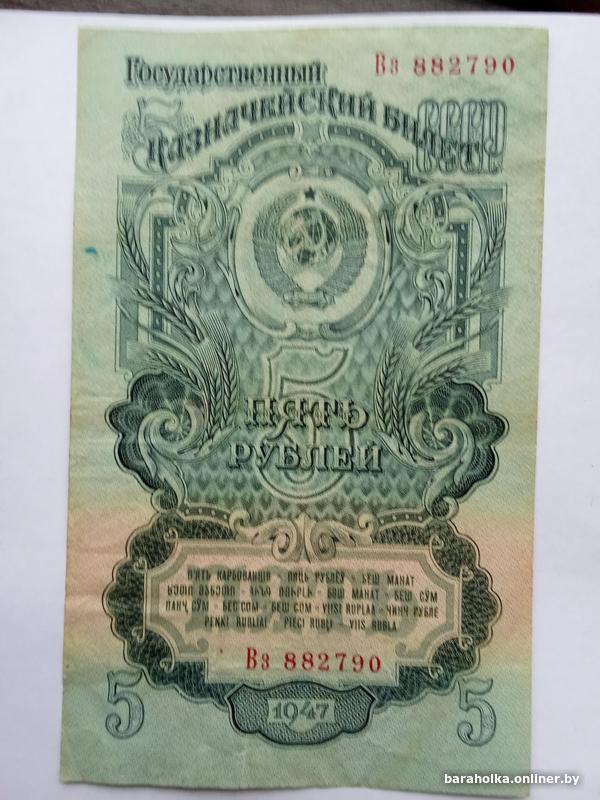 • Банкнота 5 рублей 1947 год, 16 лент, серия Вз.Минск