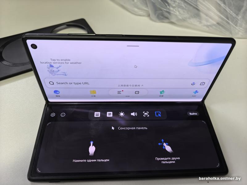 На внешнем экране наклеен гидрогель, на внутреннем задоской
