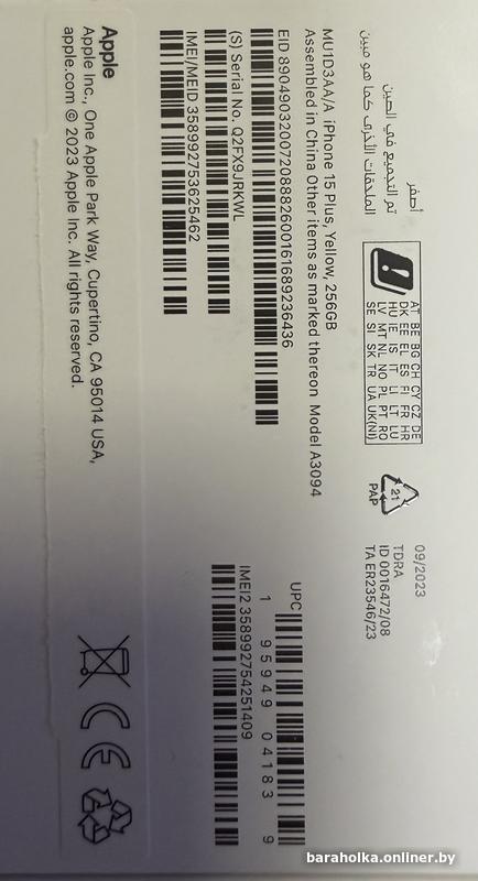 • iPhone 15 Plus 256GB, желтый, б/уМинск