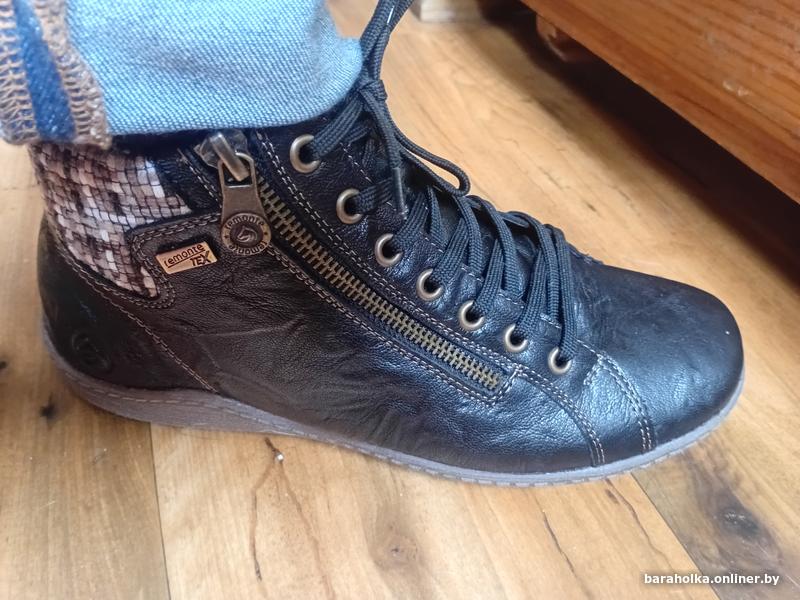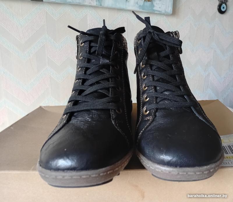 Высококачественные ботинки Remonte 39 из натуральной тисненной кожи отлично идут на этот размер. Молния 12см сбоку переда служит для одевания,шнурки регулируют ширину обуви. Хорошо профмлированная подошва 1,5 см толщиной под пальцами и 3 см род пяткой. Мобильная стелька 25,5 см с замшевым покрытием сделана эргономической на мягком силиконе с ощущением бесконечного комфорта. Кажутся очень небольшими.