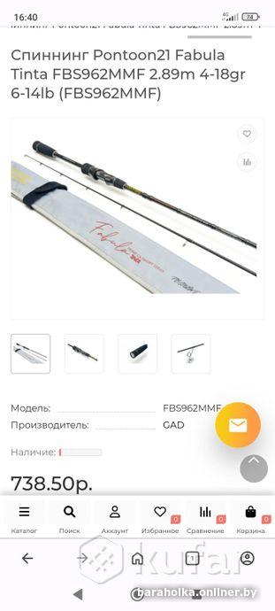 Продам спиннинг Pontoon 21 Fabula Tinta( характеристики на фото). Две рыбалки б/у( состояние идеальное). Минск(Малиновка). Цена 450р.