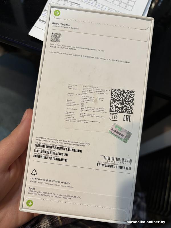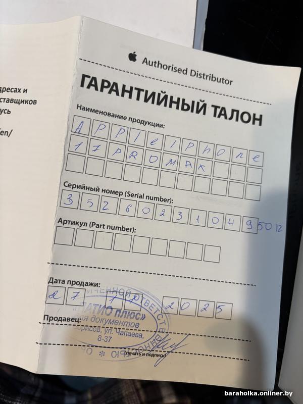Продам новый iPhone 17 Pro Max 256GB невскрыт. Куплен 27.11.25