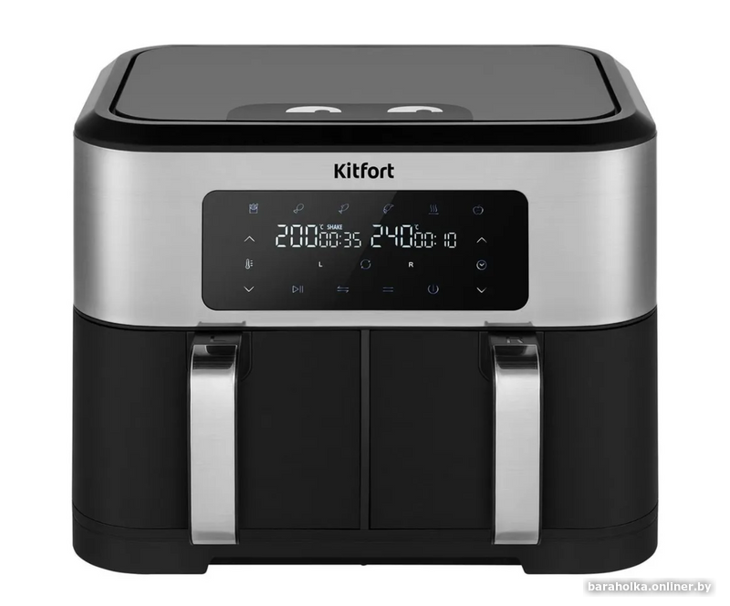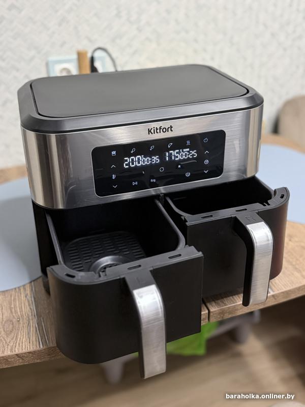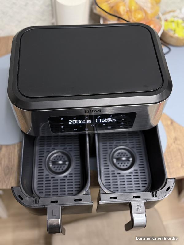 Главное преимущество КТ-2249 - наличие 2 нагревателей и 2 поддонов, что позволяет готовить 2 разных блюда одновременно, установив для каждого настройки t° и таймера. Вы можете приготовить основное блюдо и гарнир к одному времени и подать к столу горячими.