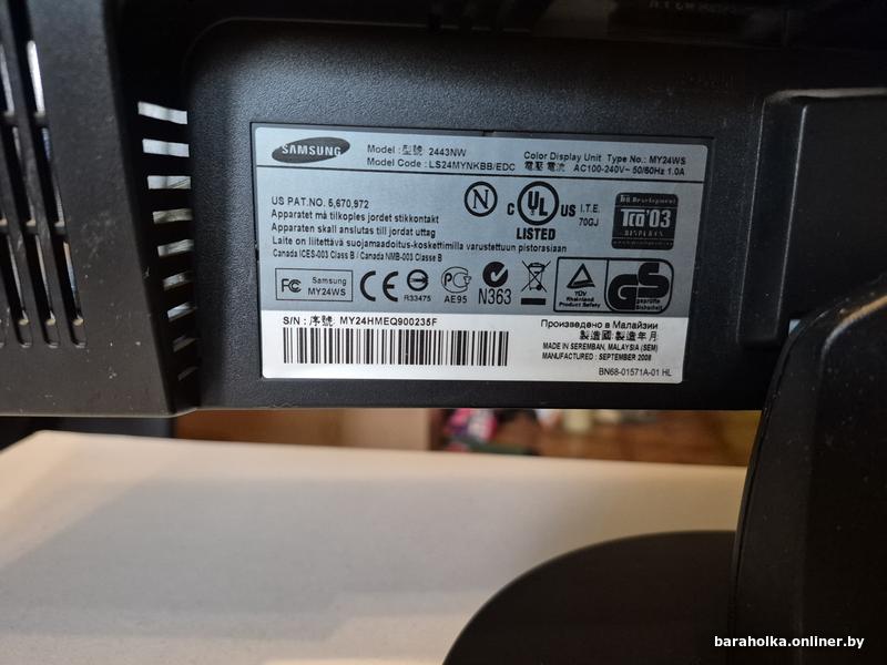 • Манитор samsung 2443NW на запчасти. Разбит экран (матрица). Проводов нетМинск