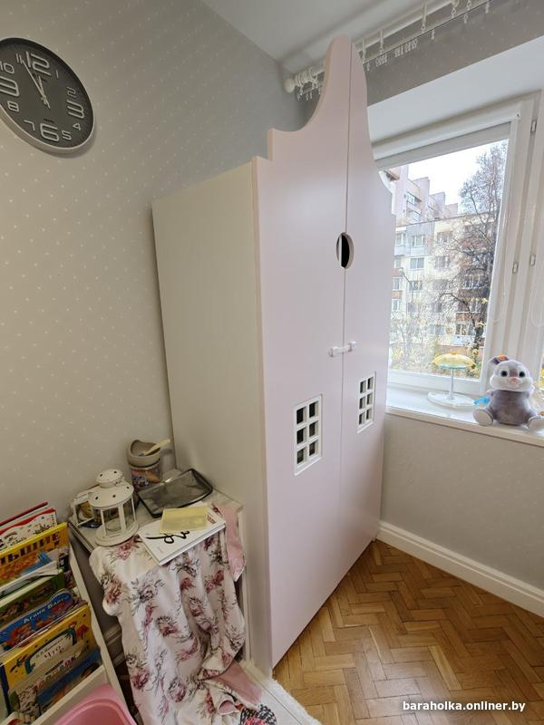 Классный детский шкаф с нежно розовыми дверями и окошками. Отлично подойдёт для вашей маленькой принцессы.