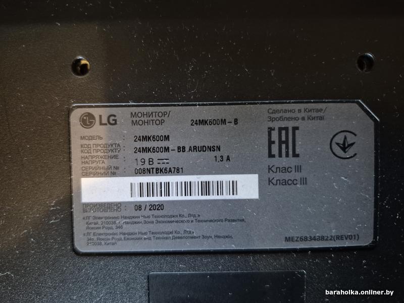 • Манитор LG 24MK600M-B на запчасти. Разбит экран (матрица). Блока питания нет.Минск