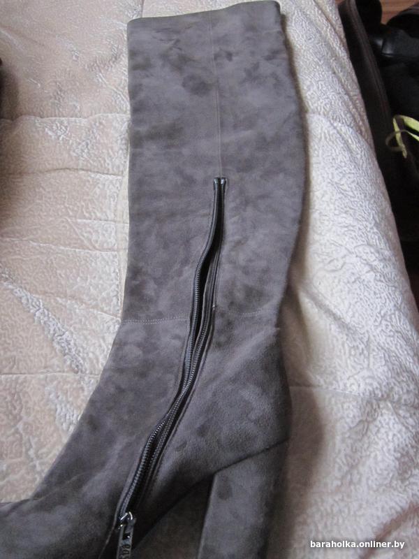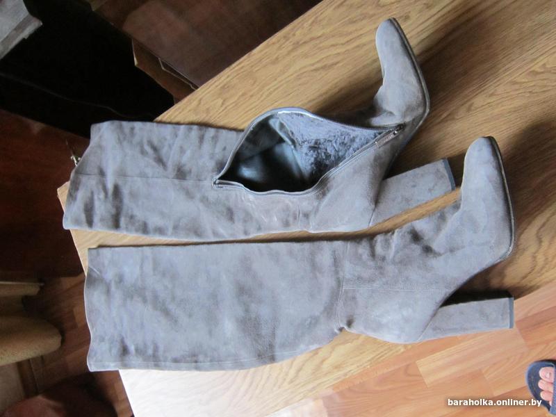 Серые замшевые ботфорты, высокие, производство Италия, Vero Cuolo. Размер 41, по стельке 26 см. В голенище внутри кожа, мех только "в ботиночке". Каблук широкий, высокий 11 см. Молния частично, не до конца голенища.