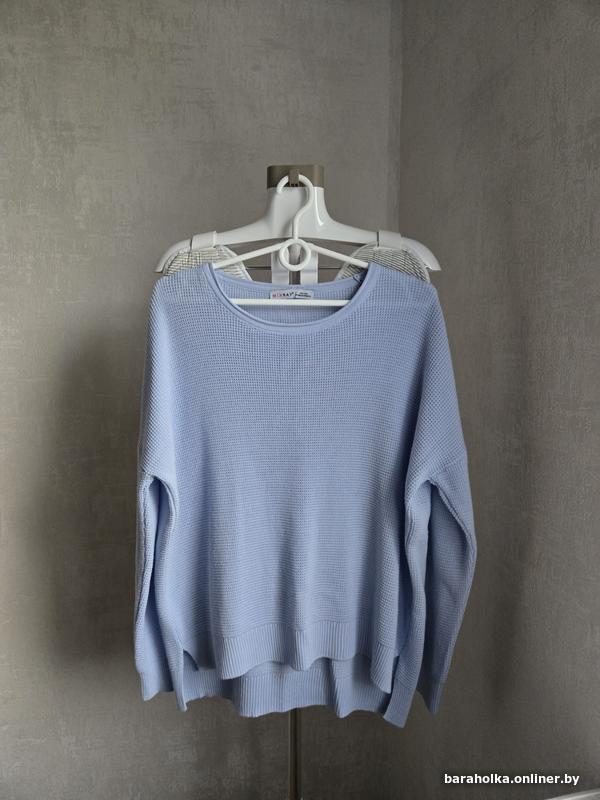 Джемпер. Турецкий бренд Dilvin. Оверсайз. На размер 40-46. Цвет нежно-голубой. Надевала 1 раз для фотосессии. Состояние новой вещи. Отправляю почтой и европочтой.