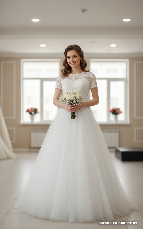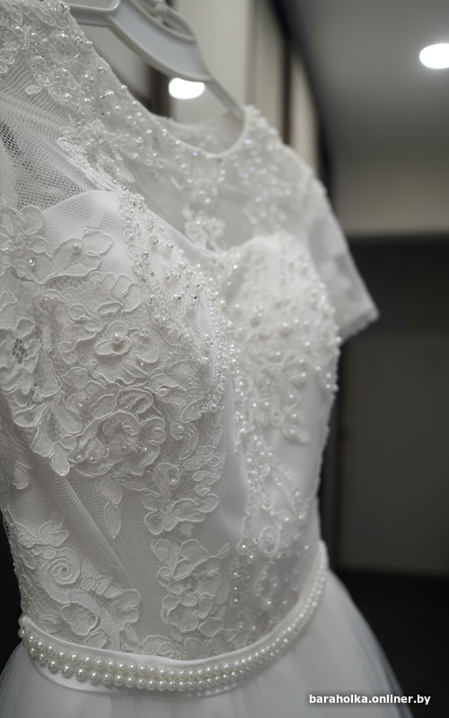 Из нюансов: на фатине внизу есть маленькая дырочка, которая спрятана под слоем фатина (не заметна). Можно отремонтировать в ателье. В остальном платье в идеальном состоянии!