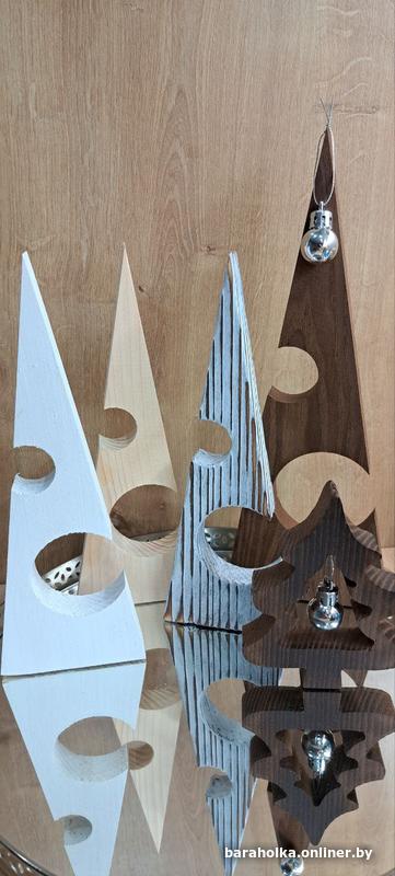 Ёлочки разных размеров и разных пород дерева от 12 см в высоту до 30 см, ширина от 9 см до 11см.