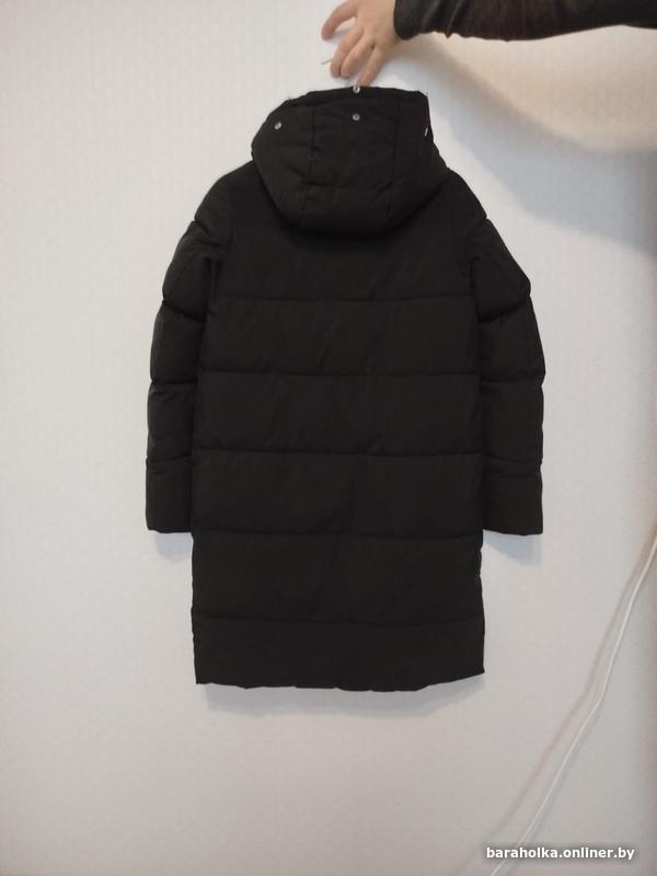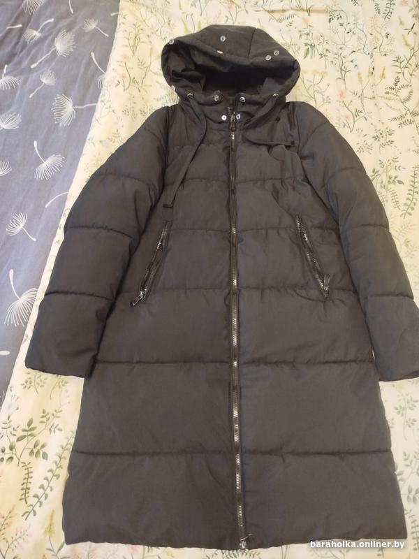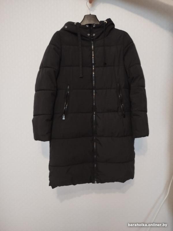 Чёрный зимний пуховик прямого кроя, в хорошем состоянии. Наполнитель холлофайбер. Носился на рост 158, размер 44.