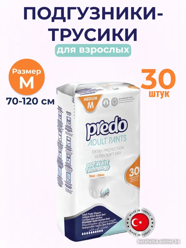 Одноразовые впитывающие подгузники-трусики для взрослых Predo размер M (70-120cm) 30 шт. в упаковке, Турция