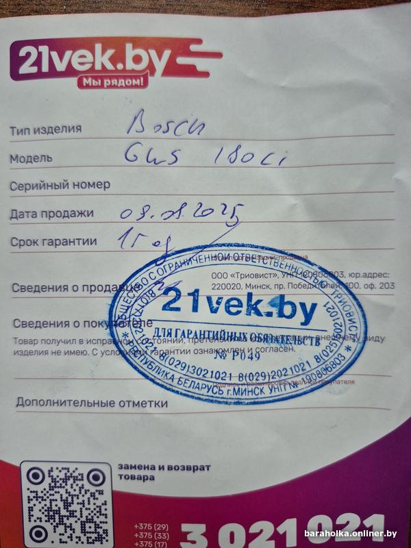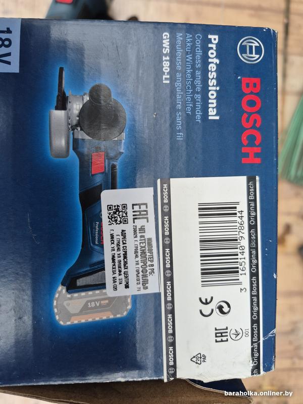 • Профессиональная угловая шлифмашина Bosch GWS 180-LI 18v.В использовании не была.В комплекте без батареиВитебск