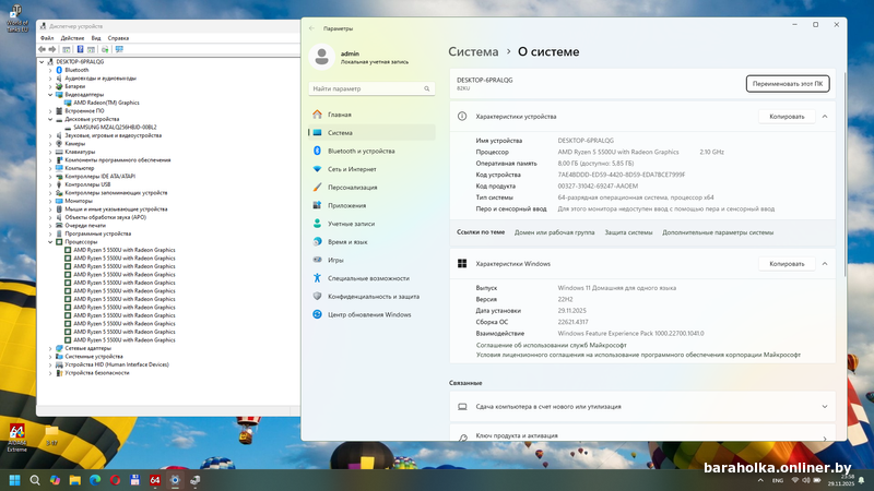 установлен Windows 11, Office... иной необходимый для работы софт;