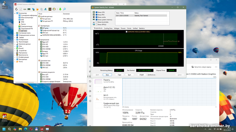 — Тонкий, с большим экраном IPS и начинкой на базе мощного мобильного процессора AMD Ryzen 5 5500U 5-го поколения 6/12 ядер;