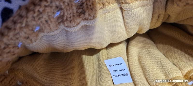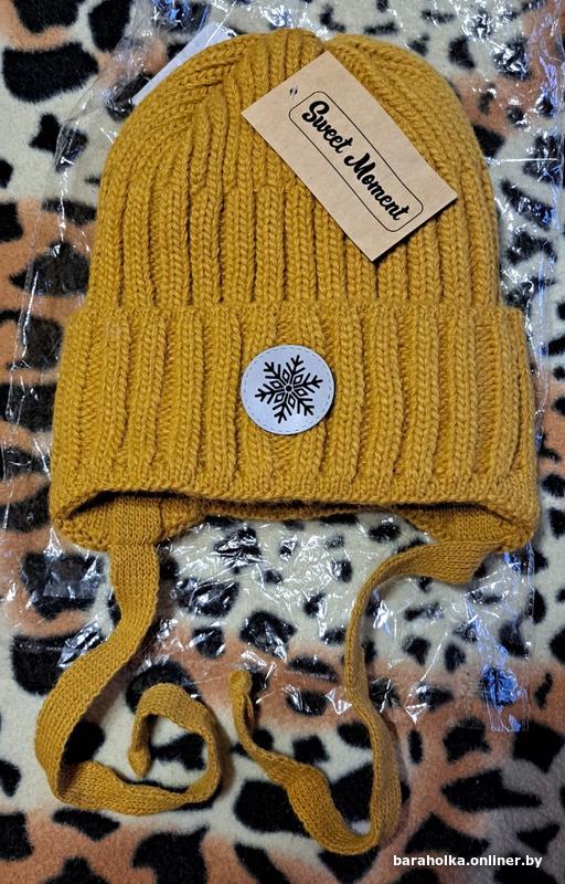 2)Шапка горчичная зимняя на 6-9лет, новая, размер 53-56, 80%-шерсть, 20%-акрил, Sweet Moment.