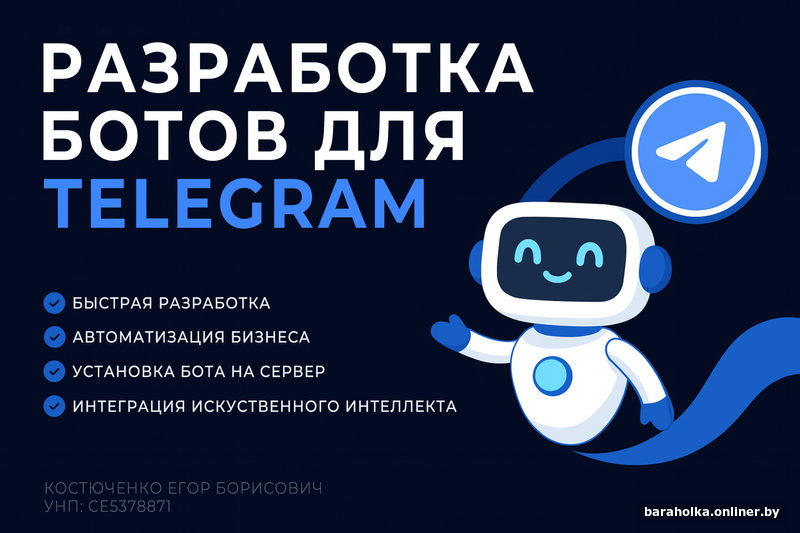 • . . В услугу входит: Разработка бота на заказ (Python): От простых чат-ботов для личного пользования, до продвинутых решений для бизнеса, много функциональных ботов с интеграцией AI-искусственного интеллекта; Бесплатная установка: Ваш бот будет установлМинск