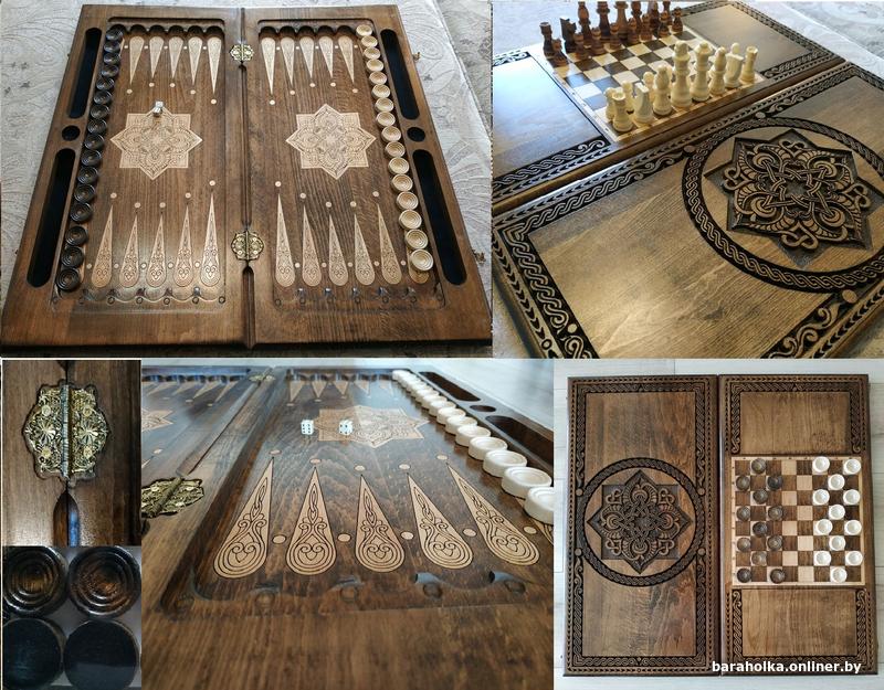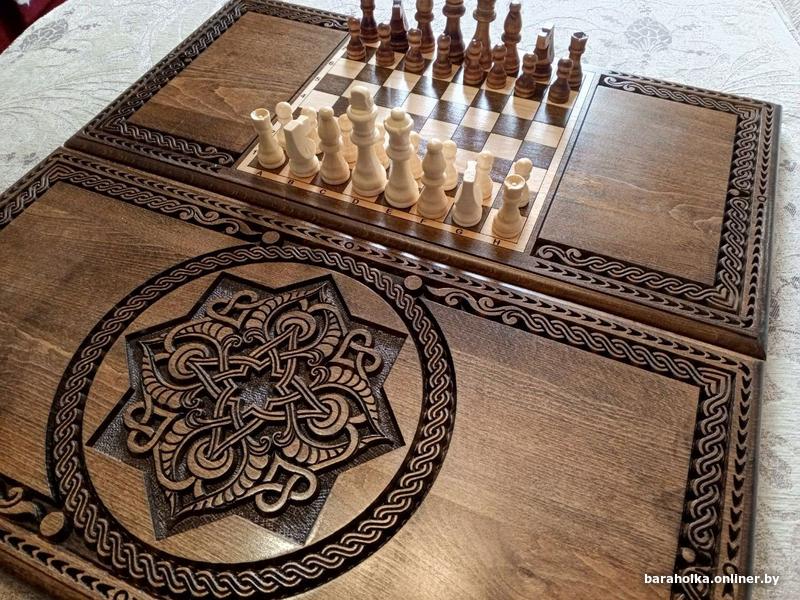 Подарочный набор Hарды + шахматы ручной работы из натурального дерева (лесная груша)