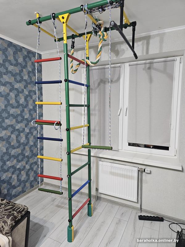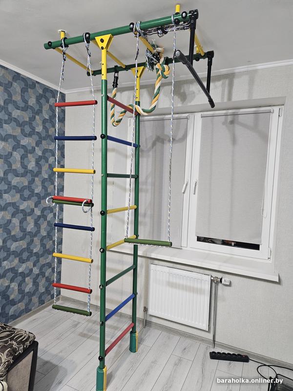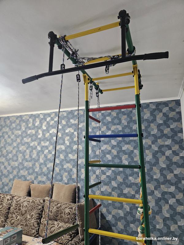 Шведская стенка с рукоходом, турником, качелями, канатом и лестницей. Идеальна для развития вашего малыша, укрепления мышечного аппарата и улучшения координации.