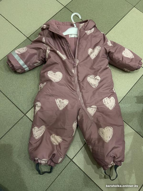 Зимний комбинезон для девочки BabyGo, декорированный принтом с сердечками