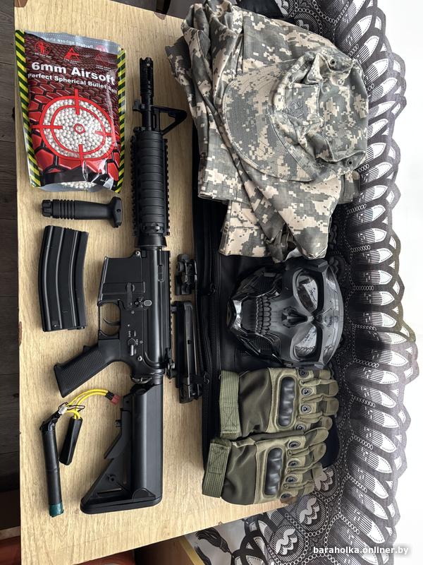 Страйкбольный привод, полностью рабочее состояние, выхлоп 100-110 м/с. Заменена пружина, направляющая пружины(выточена из латуни), сделано ТО. Заменена проводка, магазин бункер. Комплектность как на фото, форма 44 размера. Цена за всё что на фото 800р.