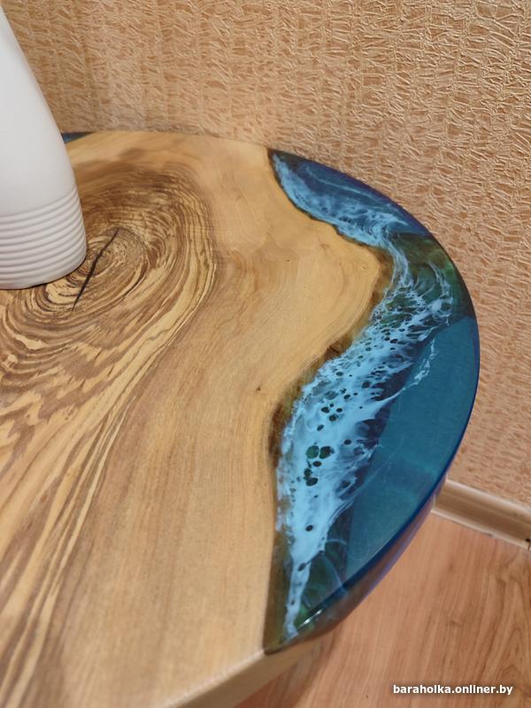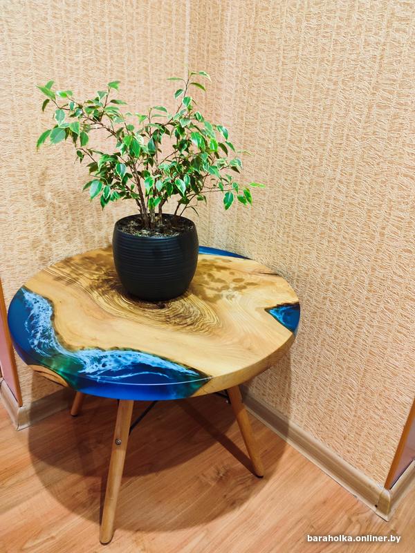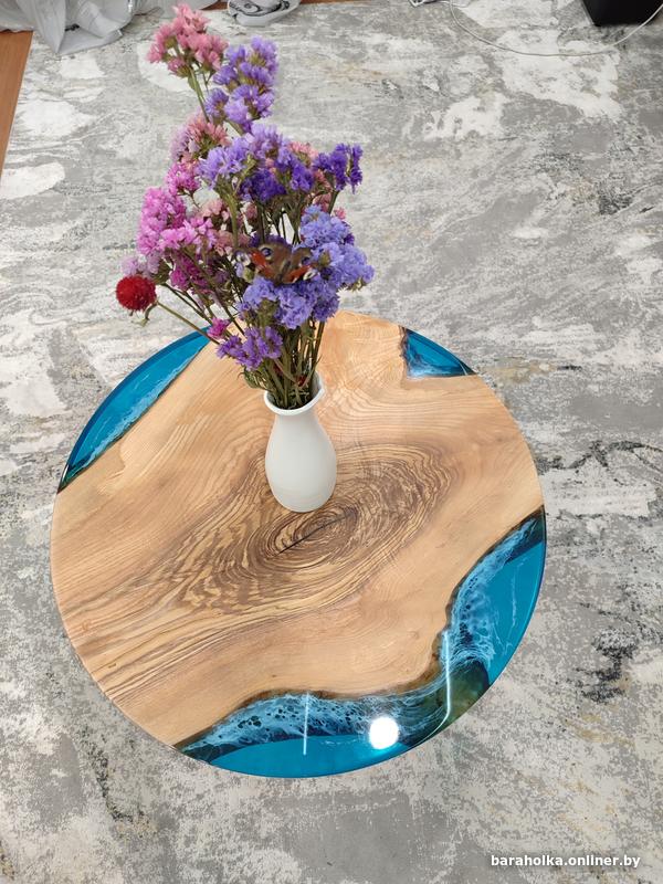 Журнальный столик ручной работы выполнен из ясеня и эпоксидной смолы . Размер 60 см подножье сборное ольха +метал.