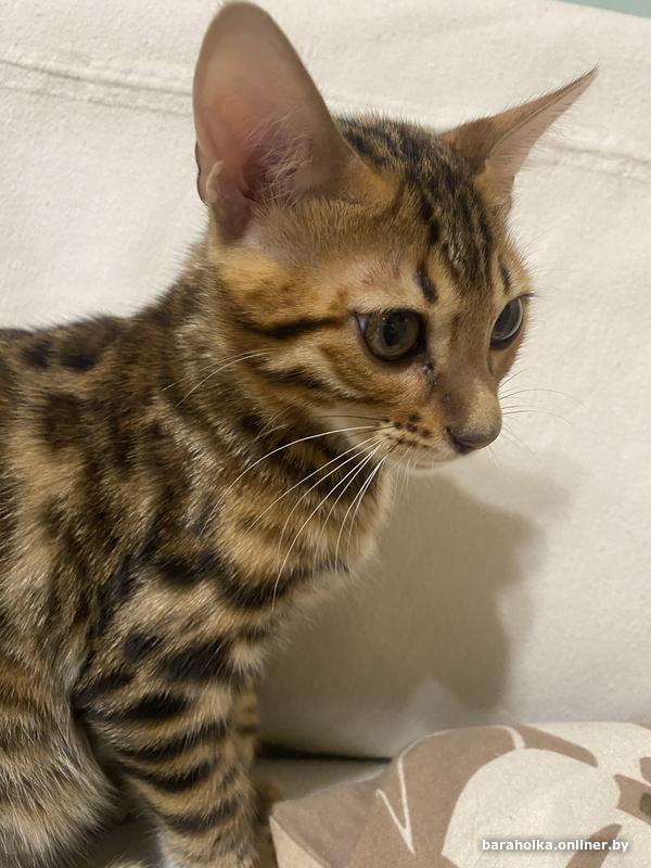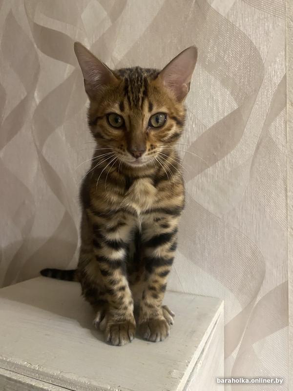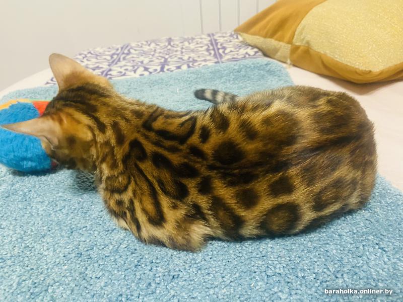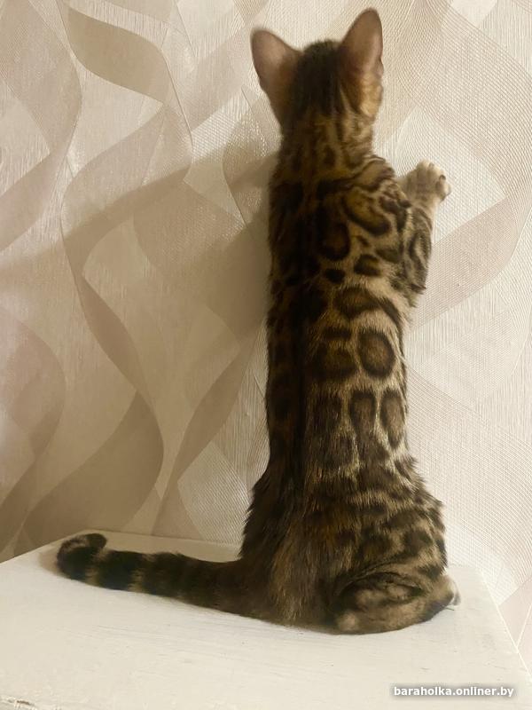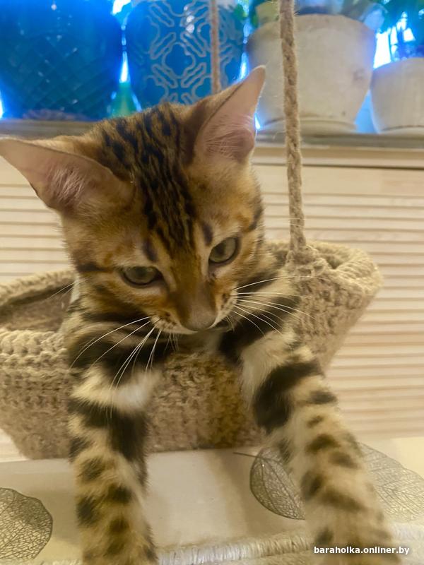 Очаровательный бенгальский мальчик, крупный, родился 18 августа 2025 года. Ласковый и игривый, от любимой кошки. Окрас розетка на золоте,пятна яркие и четкие, на редком рыжеватом фоне, что смотрится особенно ярко, шерсть имеет глитерный блеск, без подшерстка, шелковая на ощупь. Умный и любознательный, приучен к лотку и когтеточке. Наполнит вашу жизнь эстетическимудовольствием от силы и грации маленького леопарда.
