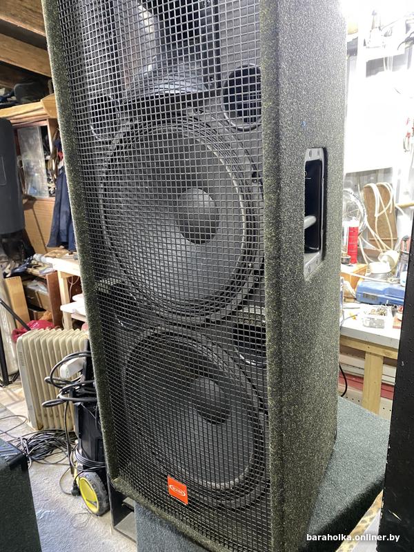 Колонка не была в употреблении.Сделана из фанеры и покрыта темным карпетом.Мощность колонки 550ватт .Двухполосная система 2 динамика 15 дюймов и высокочастотный драйвер 1,75 дюйма 60 ватт.В наличии 1 шт. Продаем или обмен на музыкальное.т. 296786449Минск