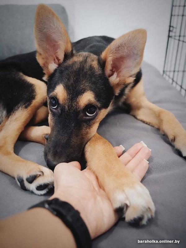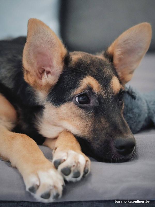 Спасённый щенок Малыш (4.5 мес, привит, метис овчарки) ищет дом. Когда вырастет, будет по размеру ближе к средней собаке, примерно 18–23 кг.