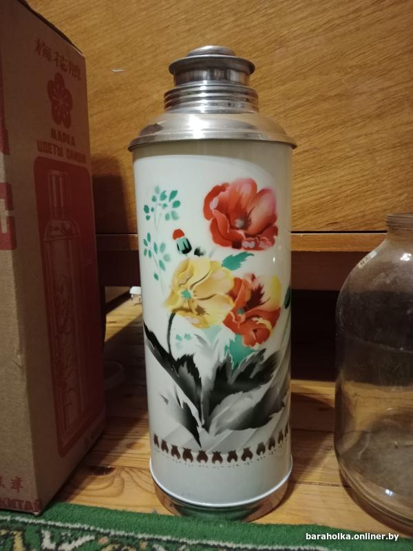 Термос Китайский времён СССР 5 фунтов (2,25 л). Абсолютно новый, в заводской упаковке. Со стеклянной колбой. На коробке написано ЦВЕТЫ СЛИВЫ, хотя на термосе МАКИ.