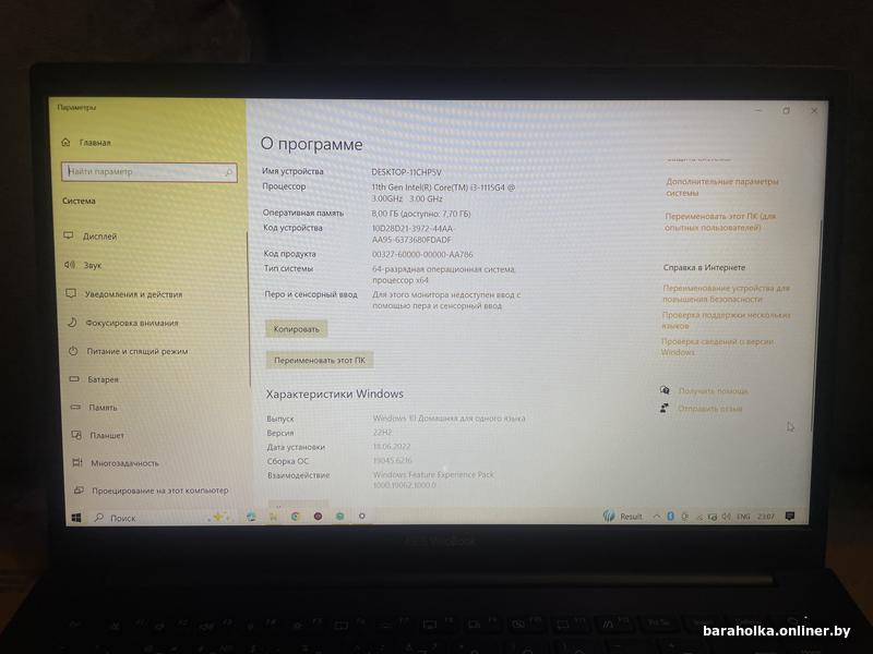 ОС: Windows 10 Home (установлена с даты покупки 18.06.2022).