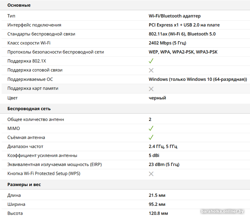 Wi-Fi и Bluetooth адаптер TP-Link Archer TX3000E. Характеристики на фото. Был в использовании. В идеальном состоянии. Торг уместен. Отправляю Европочтой и Белпочтой.