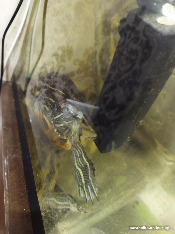 Отдам в хорошие руки красноухую черепаху и аквариум на 50л бесплатно.+375292630890