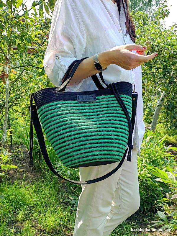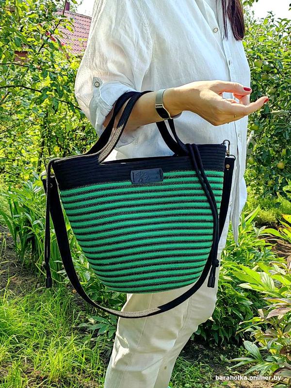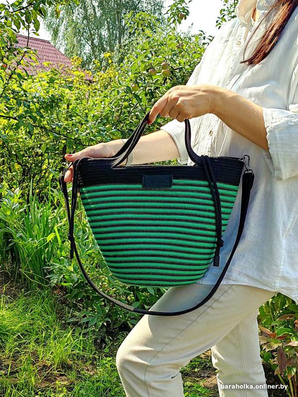 Выбирая эту черно-зеленую сумочку, надо понимать – это не основной цвет, а броская вставка в комплект.