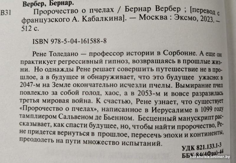 В продаже литературное произведение Бернара Вербера "Пророчество о пчёлах", - автора таких трилогий как "Муравьи", "Авантюристы науки", дилогии "Танатонавты" и др.