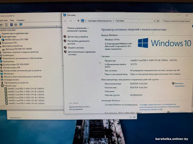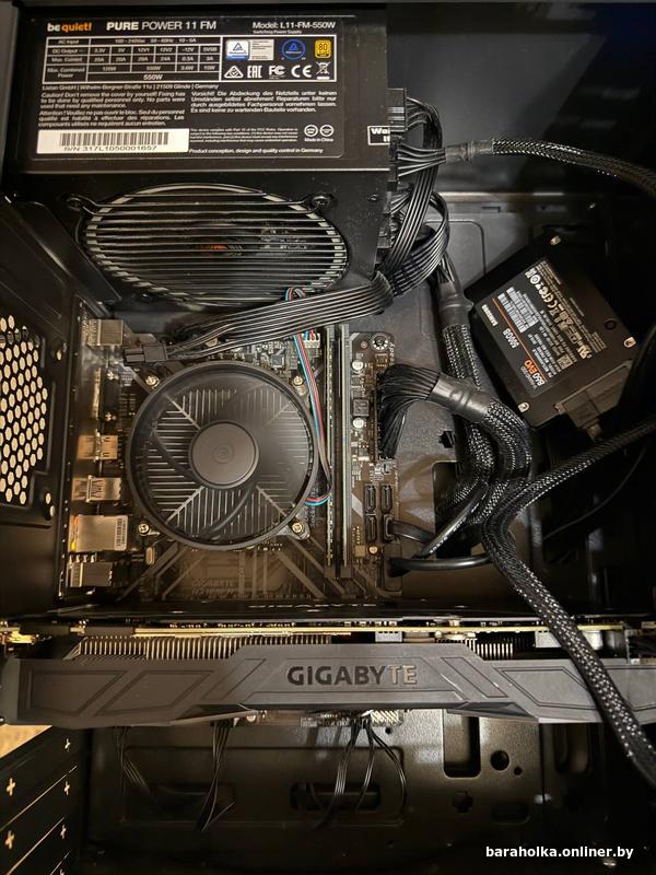 Процессор Intel Core i5-9500 (6 ядер, частота 4.4/3 ГГц), материнская плата GigaByte H310, 32gb ddr4, 500gb ssd Samsung EVO 860, GeForce GTX 1080 8gb GigaByte 3-х кулерная, 550w блок питания BeQuiet (Gold). В отличном состоянии. Никаких нареканий и проблем по работе. Любые проверки и тесты на месте. Торга нет. 8(033)6599055