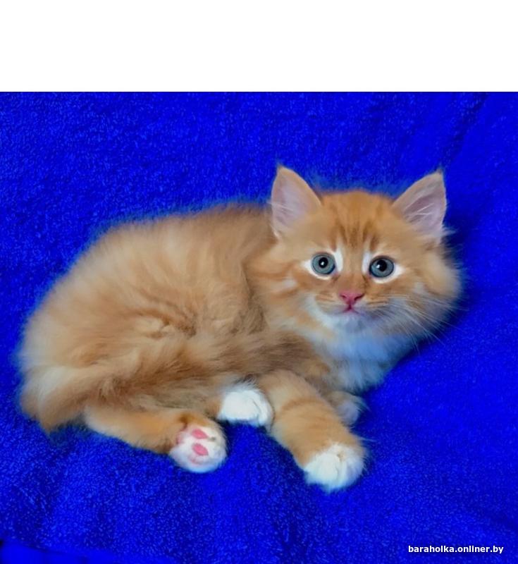Сибирский котёнок,возраст два с половиной месяца,окрас Рыжий,невероятно добрый ласковый приветливый котёнок,подойдёт в семью с детками,очень контактный,мурчащий малыш.Звоните по телефону +375298583930