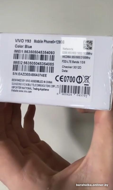 • Новый телефон Vivo 6/128Gb синего цвета, полный комплект , не использовался, в заводских плёнкахБобруйск