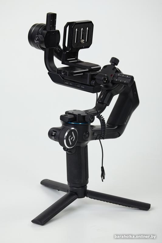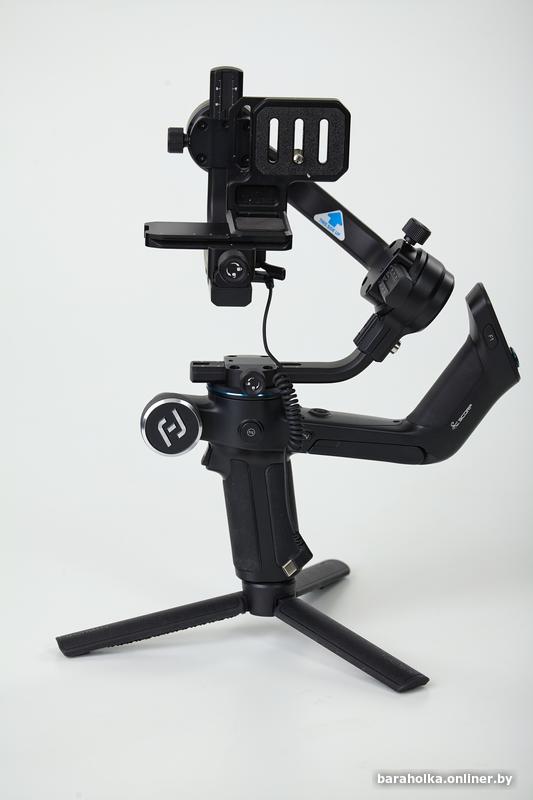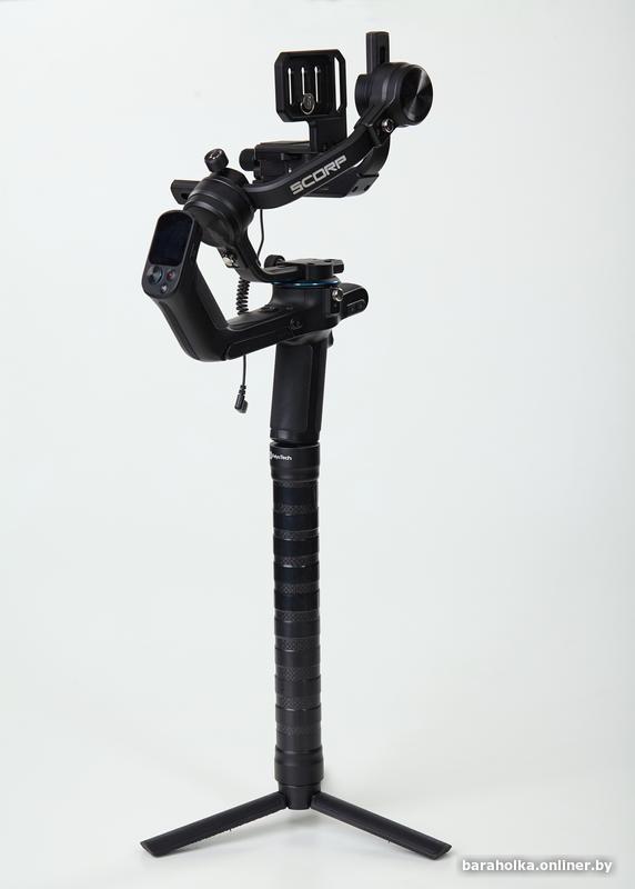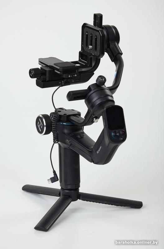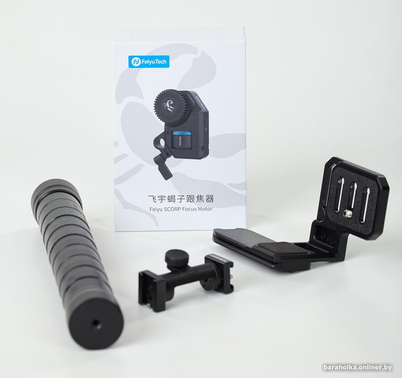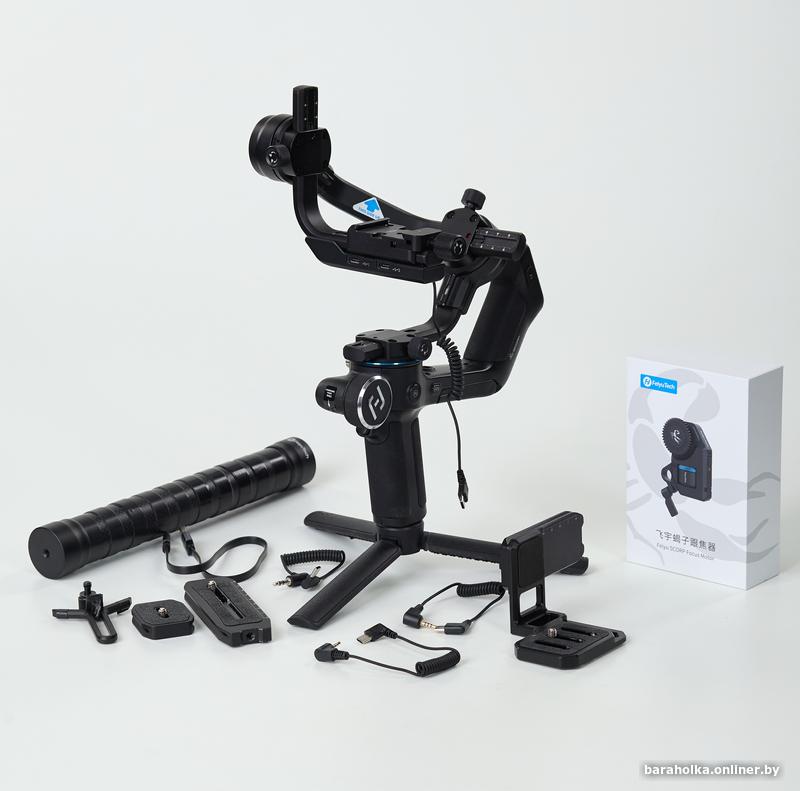 . Удобно лежит в руке (эксклюзивное. очень удобно). жно управление мобильным. дополнительно в комплекте крепление для навески аксессуаров, удлинённая ручка, крепление для вертикальной сьёмки, двигатель FeiyuTech с функцией Follow Focus для серии SCORP - подключаться для ручного управления объективом (фокус, зум)