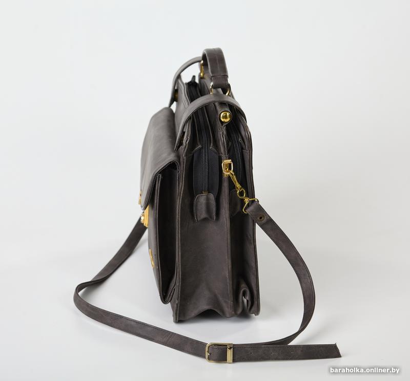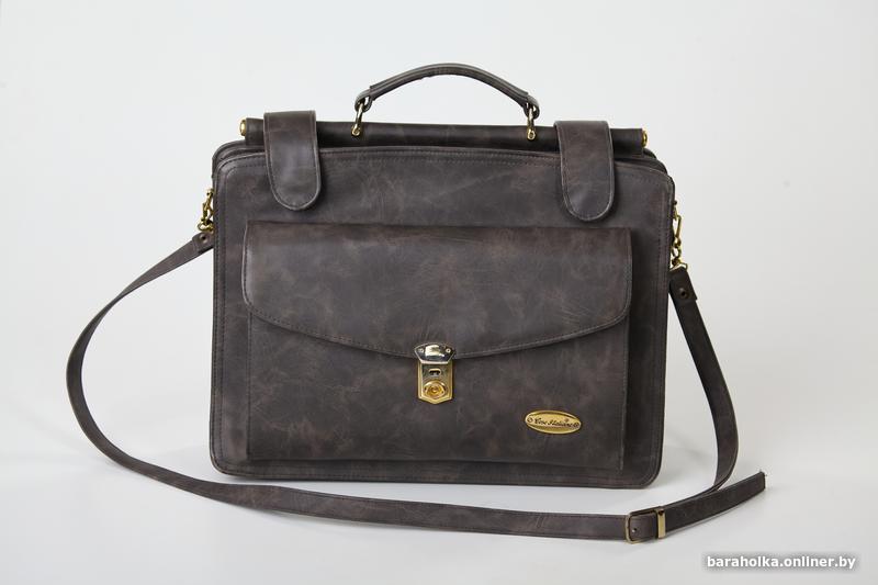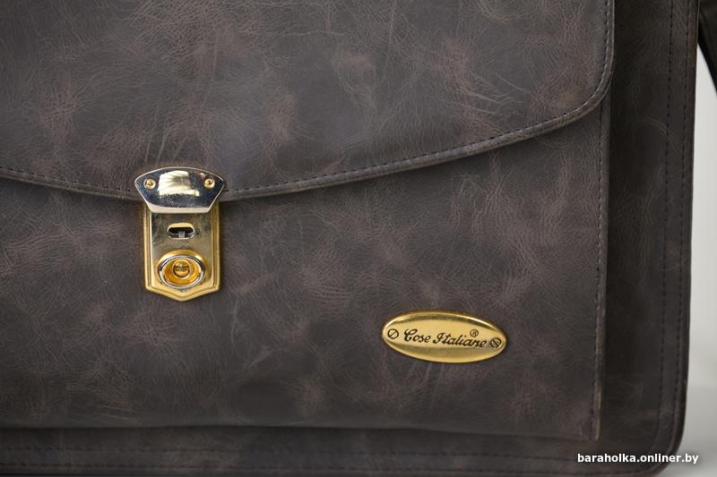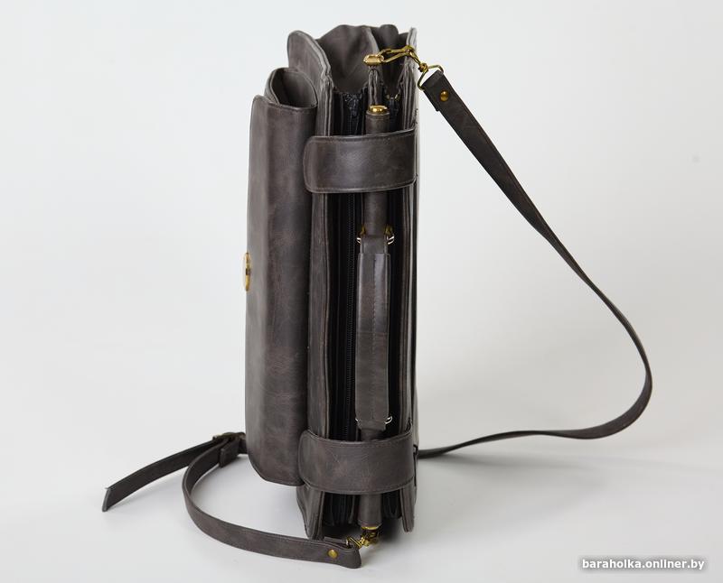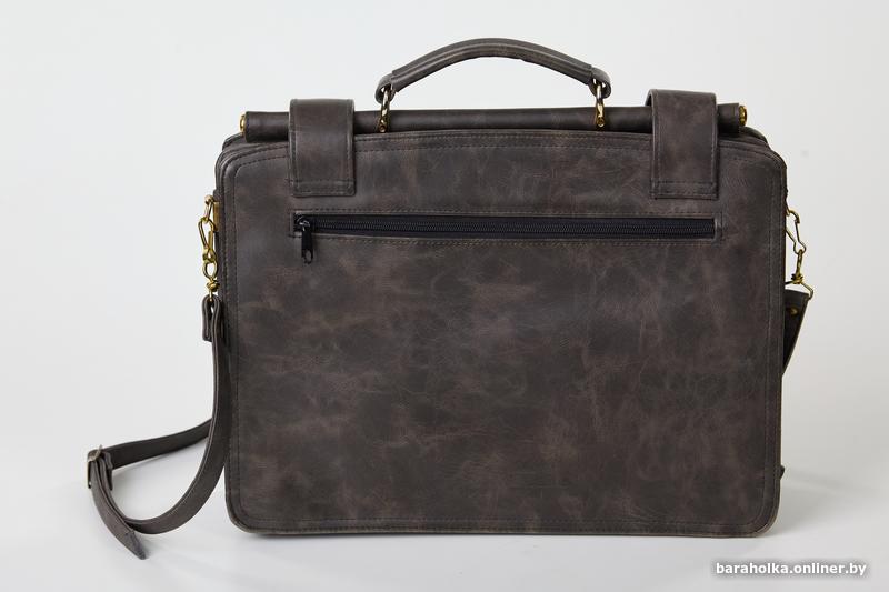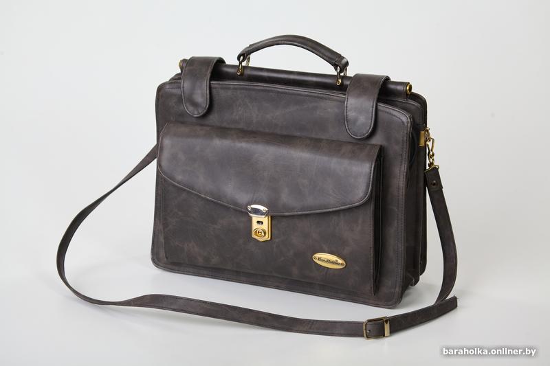 Портфель с ручкой и ремнём, на передней стороне накладной карман с защёлкой на ключ, сверху два магнитных замках закрывается на 2 замка защёлки. На задней стенке расположен карман. Внутри: два отделение больших отделения на молнии.