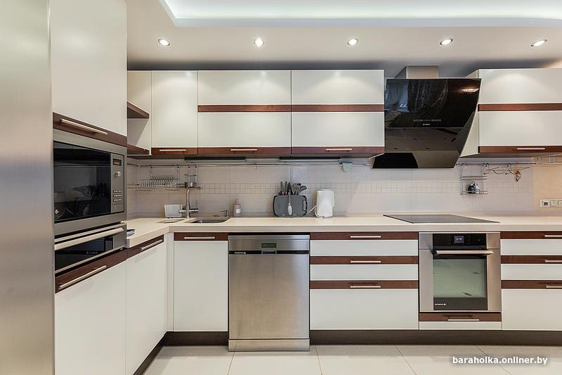 Кухонная зоной оборудована варочной панелью, посудомоечной машиной, свч печь, духовой шкаф, встроенный холодильник и всей необходимой посудой.