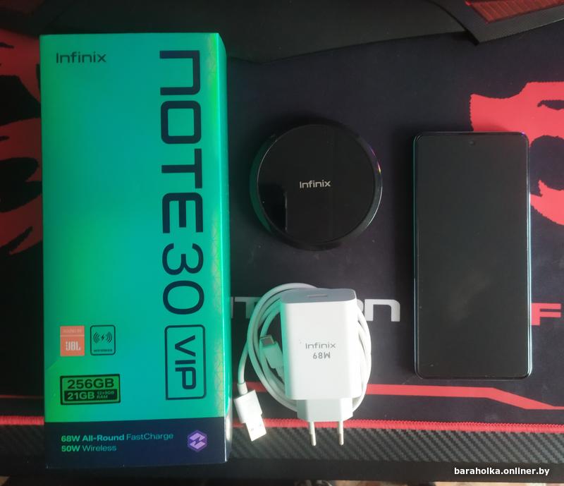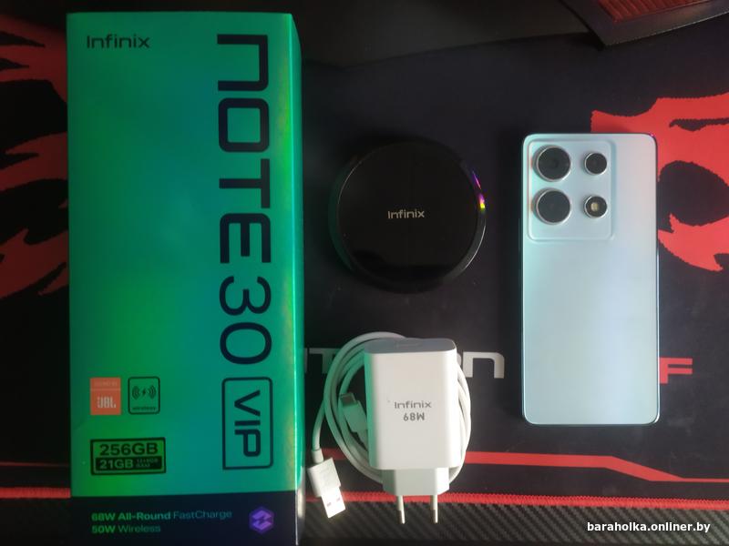 Продам смартфон Infinix Note 30 VIP X6710 12GB/256GB (глянцево-белый). Полный комплект: смартфон, быстрое зарядное на 68W, кабель, беспроводное зарядное устройство на 15W, скрепка для сим лотка, все коробки и доки. Два силиконовых бампера в нагрузку. Состояние 9.5/10 внешка (наклеена новая гидрогелевая пленка), 10/10 - по работоспособности. Дает прикурить новым среднебюджетникам : больше 1000000 баллов в тесте Antutu! Отправление почтой/европочтой; расходы оплачивает покупатель. Для отправки задаток на номер телефона 20р.