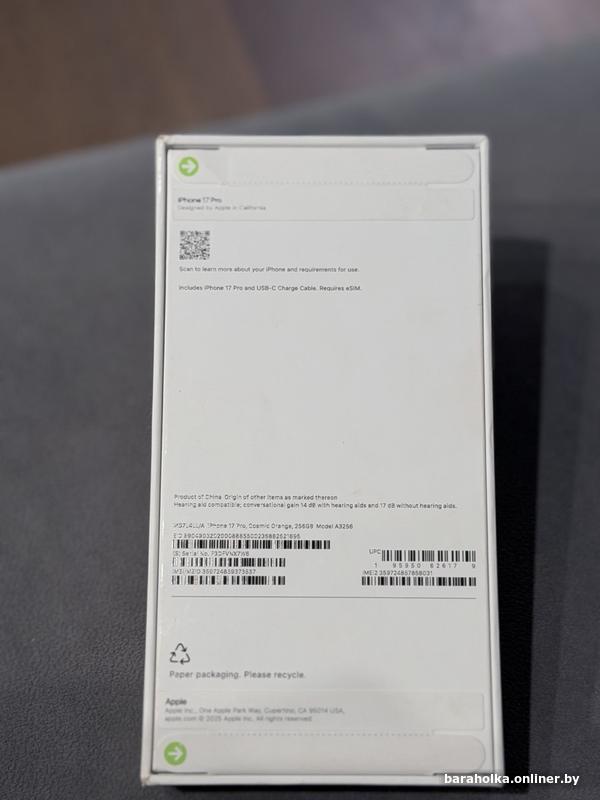 Продаю iPhone 17 Pro, 256 GB, Cosmic Orange — абсолютно новый, даже плёнку не трогала.
