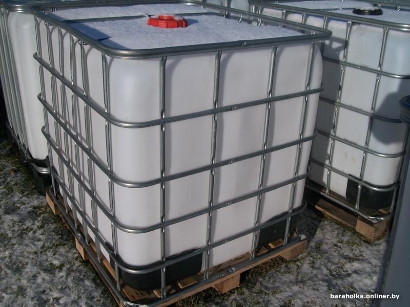 1000 литров с краном в обрешетке.